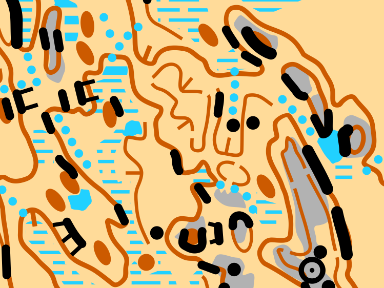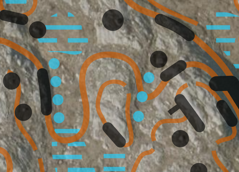 But once you go to the area and spend some time getting familiar with it, a way forward emerges. There is usually more bare rock on the tops of the hills and sometimes a slightly different type of vegetation grows in the (wetter) reentrants and valleys. Coupled with a few shadows, this gives you enough to start seeing the satellite image in 3D. Finally, combining this new viewpoint with actually looking around and thinking about what shape of contour best matches the terrain, you can draw your contours with some level of confidence!