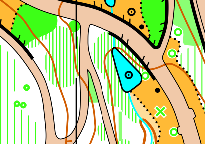 The last few things I did were adding north lines, a legend, and making sure everything obeys the minimum size and gap limits, as specified by the IOF's specification. I had to make a few adjustments - for example a few thickets too small and a few line features shorter than the minimum lengths. There are probably a few little things left too - always room for improvement!