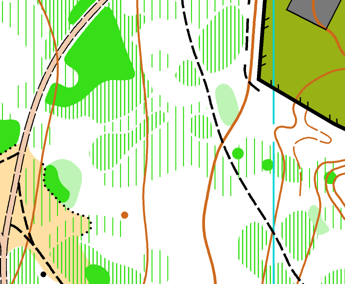 The LiDAR and OS base were much the same as for other maps so I won't talk about that again. 1:4000 and 2.5m contours gives you the opportunity to map in a lot of detail and include some very small features if you want to, whilst still not breaking the spec. However, I still wanted to make a nice readable map so I was trying to keep my forest generalisation brain switched on for some areas of vegetation.